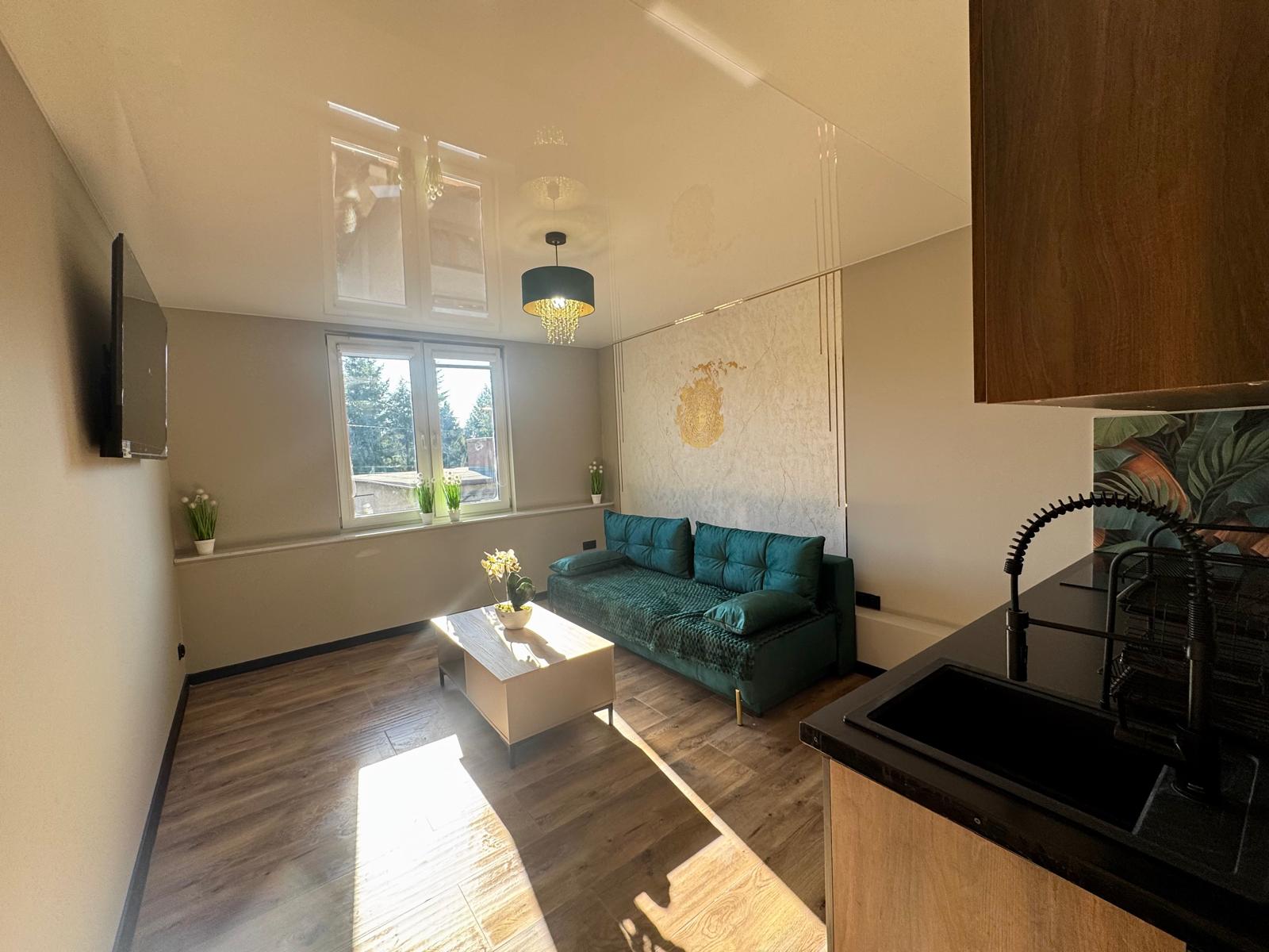 W tym projekcie wykonaliśmy pełną modernizację pokoju dziennego z aneksem kuchennym. Prace objęły: