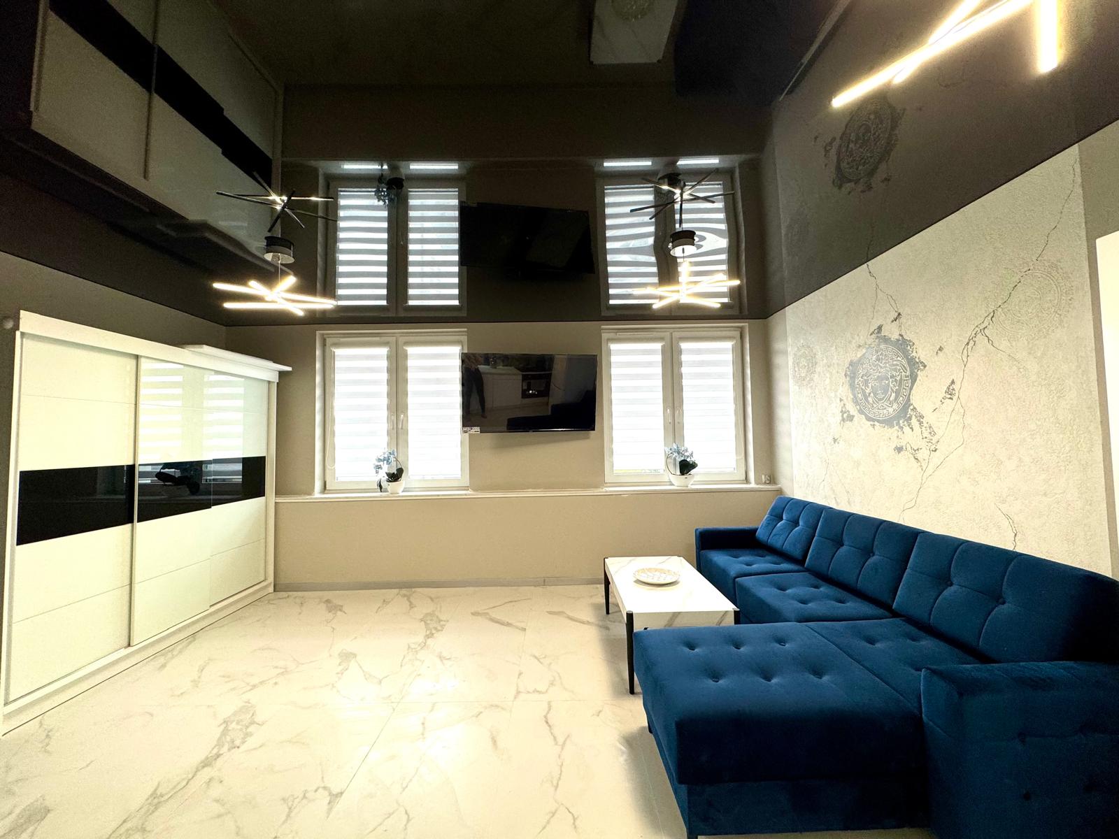 • wykonanie sufitu napinanego z efektem połysku i odbicia światła, który nadaje wnętrzu głębi i elegancji,